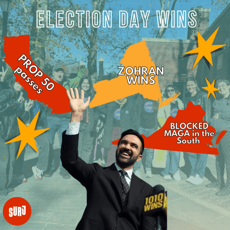 MAGA’s escalating attacks on immigrants are brutal– tearing apart families and forcing people to live in fear. As they have for decades, immigrant communities are rising up and showing us all what bravery in the face of repression looks like. We’re proud that SURJ and our partners at Solidarity Organizing